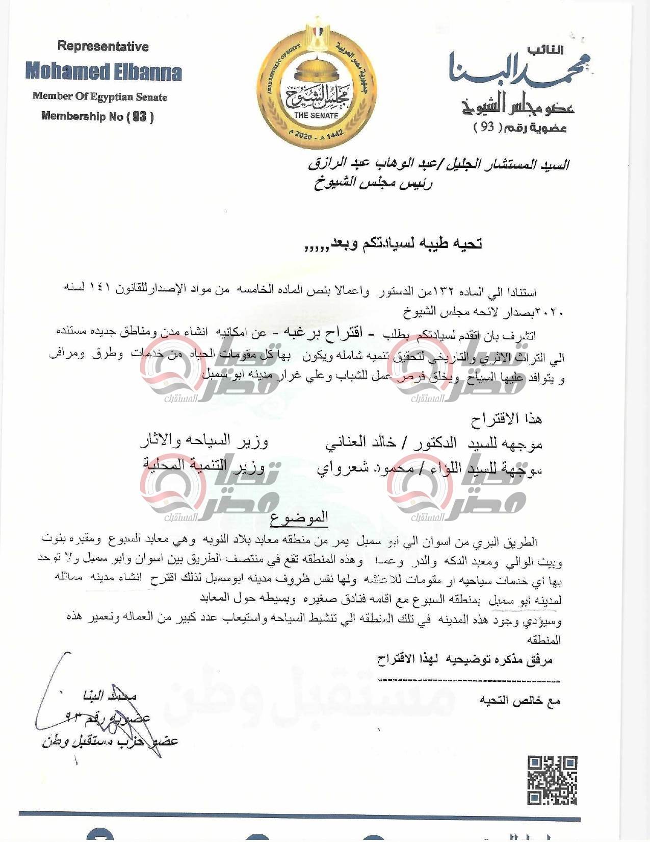 الشيوخ يحيل اقتراح محمد البنا لإنشاء مدن جديدة مستندة إلى التراث الأثري والتاريخي للحكومة
