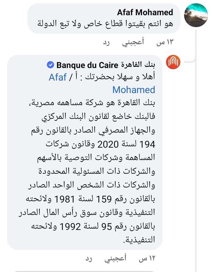 عميل بنك القاهرة يتساءل: "هو أنتو بقيتوا قطاع خاص".. والمصرف يرد