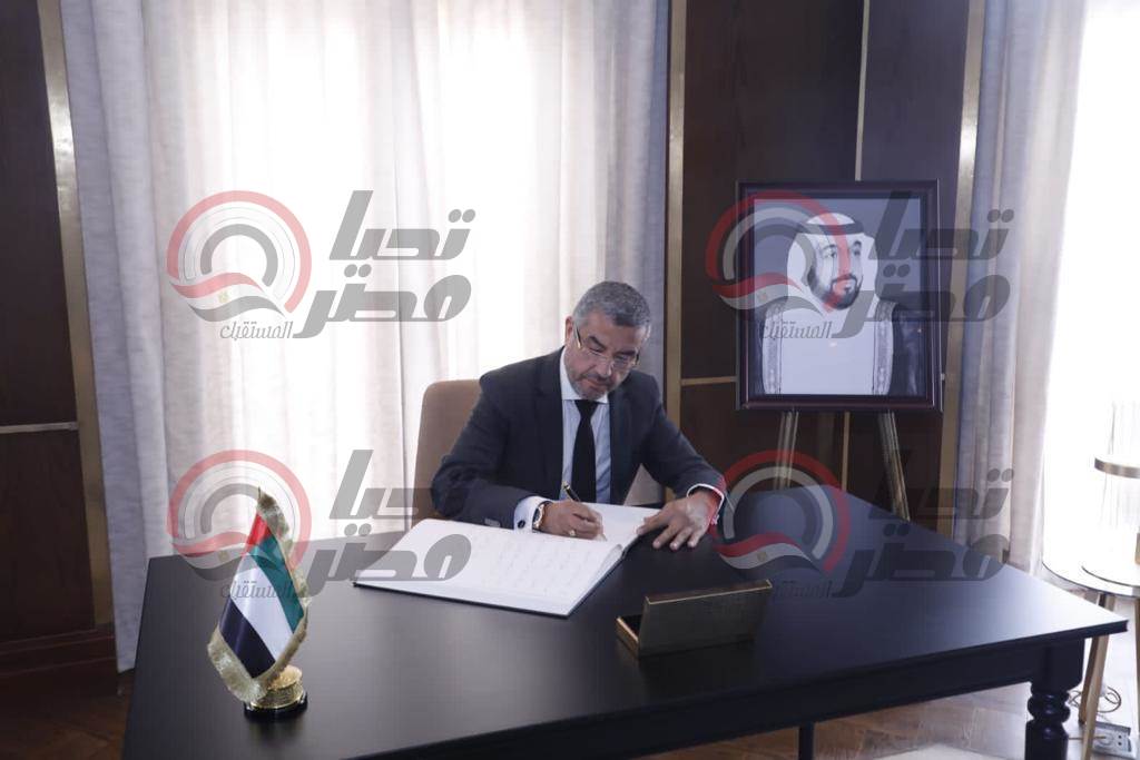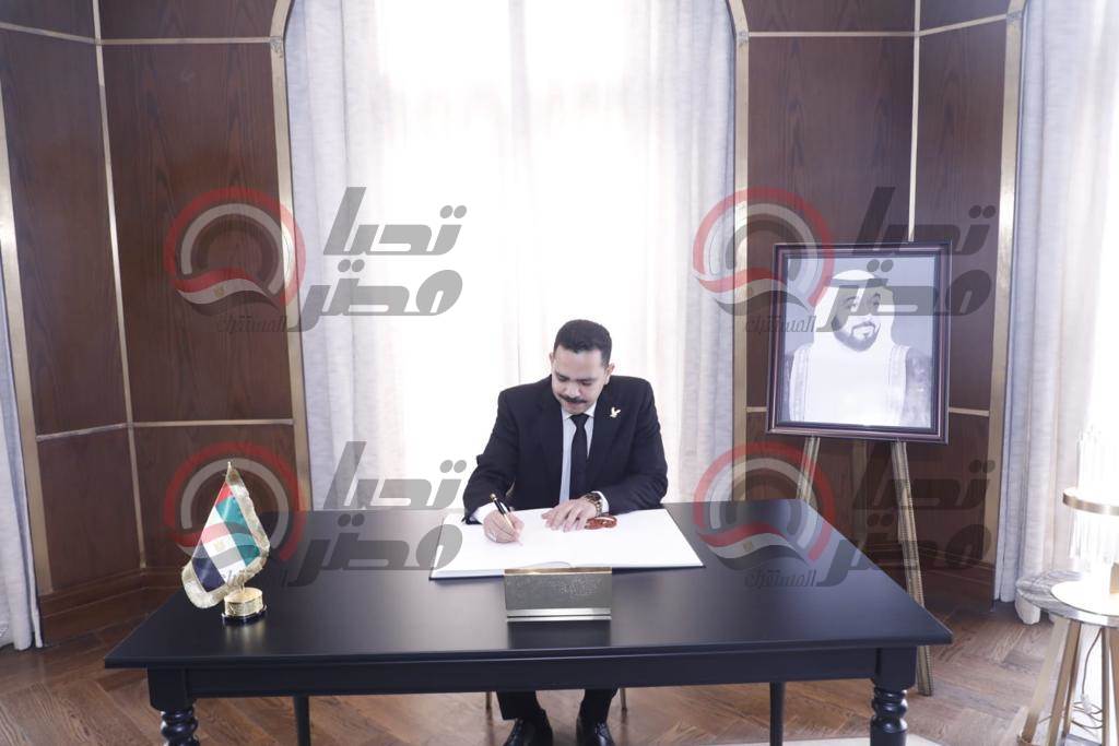 وقدم الوفد واجب العزاء إلى السفيرة مريم الكعبي سفير دولة الإمارات العربية المتحدة لدى مصر، وذلك بمقر السفارة بالقاهرة.