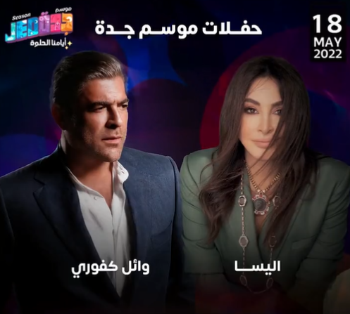 سيقام حفل إليسا ووائل كفوري اليوم الأربعاء في جدة بالمملكة العربية السعودية ومن المقرر أن يقدما مجموعة مميزة من أشهر أغنياتهما التي يتفاعل معها الجمهور ويحبها الحضور بجانب أعمالهما الجديدة.