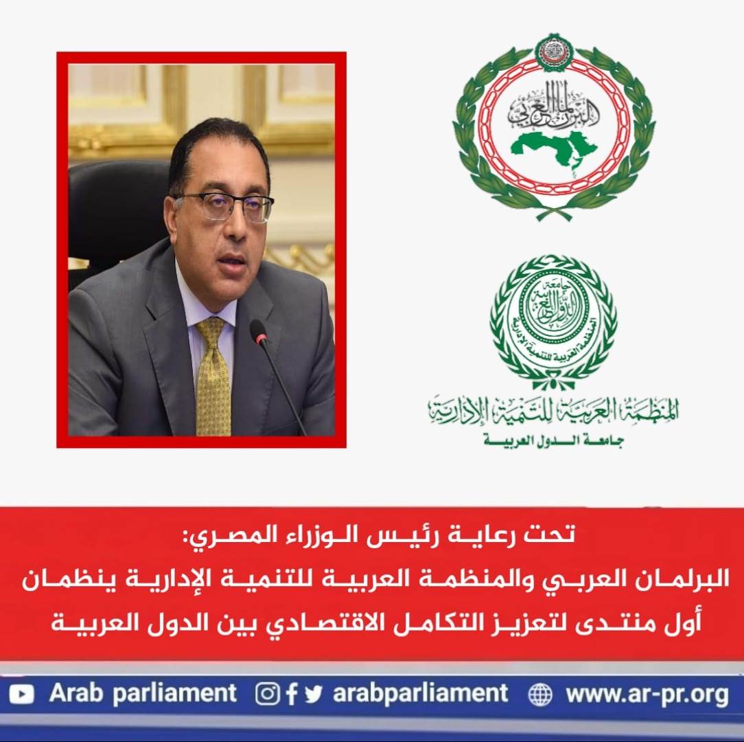 برعاية مصطفي مدبولي..البرلمان العربي والمنظمة العربية للتنمية الإدارية ينظمان أول منتدى لتعزيز التكامل الاقتصادي فى المنطقة