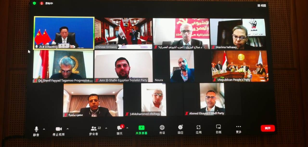 وشهد الاجتماع مشاركة أحمد السيد أمين لجنة العلاقات الخارجية بحزب العدل، ومن الجانب الصيني، ليو واي نائب مدير عام إدارة غرب آسيا وشمال إفريقيا، وتشو روي، مساعد وزير دائرة العلاقات الخارجية للحزب وذلك يومي ١٨ ١٩ مايو عبر الفيديو كونفيرنس.