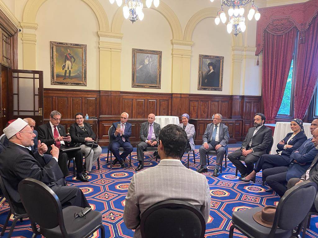 جاء ذلك خلال لقاء فضيلته برموز ورؤساء الجالية المصرية في لندن ضمن لقاءات زيارته الرسمية إلى المملكة المتحدة، حيث ألقى كلمة تاريخية في مجلسَي العموم واللوردات البريطاني، وأجرى عددًا من اللقاءات المهمة مع العديد من الشخصيات الرسمية البريطانية.