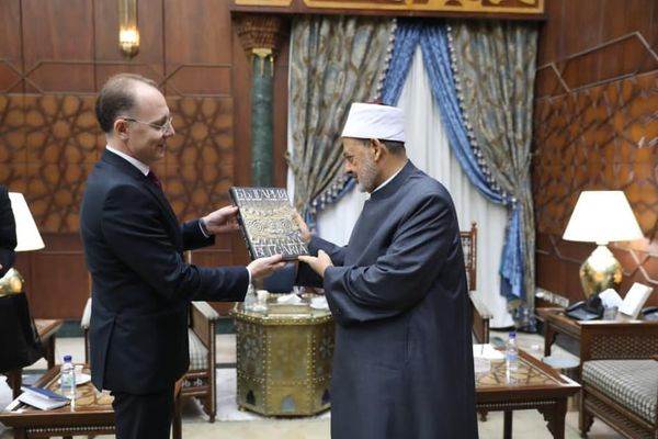 الإمام الأكبر خلال لقاءه بـ سفير بلغاريا: سيظل الأزهر منارة للعلم ومحافظا على الشريعة وعلوم اللغة