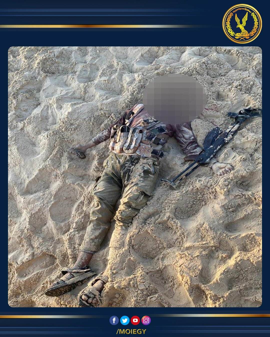 تمكن أحد الإرتكازات الأمنية بمنطقة التلول بشمال سيناء من إحباط محاولة أحد العناصر الإرهابية القيام بعمل إنتحارى ضد أفراد الكمين ، وتبادلت معه إطلاق النيران مما أدى إلى مصرعه والعثور بحوزته على (حزام ناسف – 2 قنبلة يدوية – سلاح آلى – 4 خزينة خاصة به – عدد 112 طلقة من ذات العيار ).