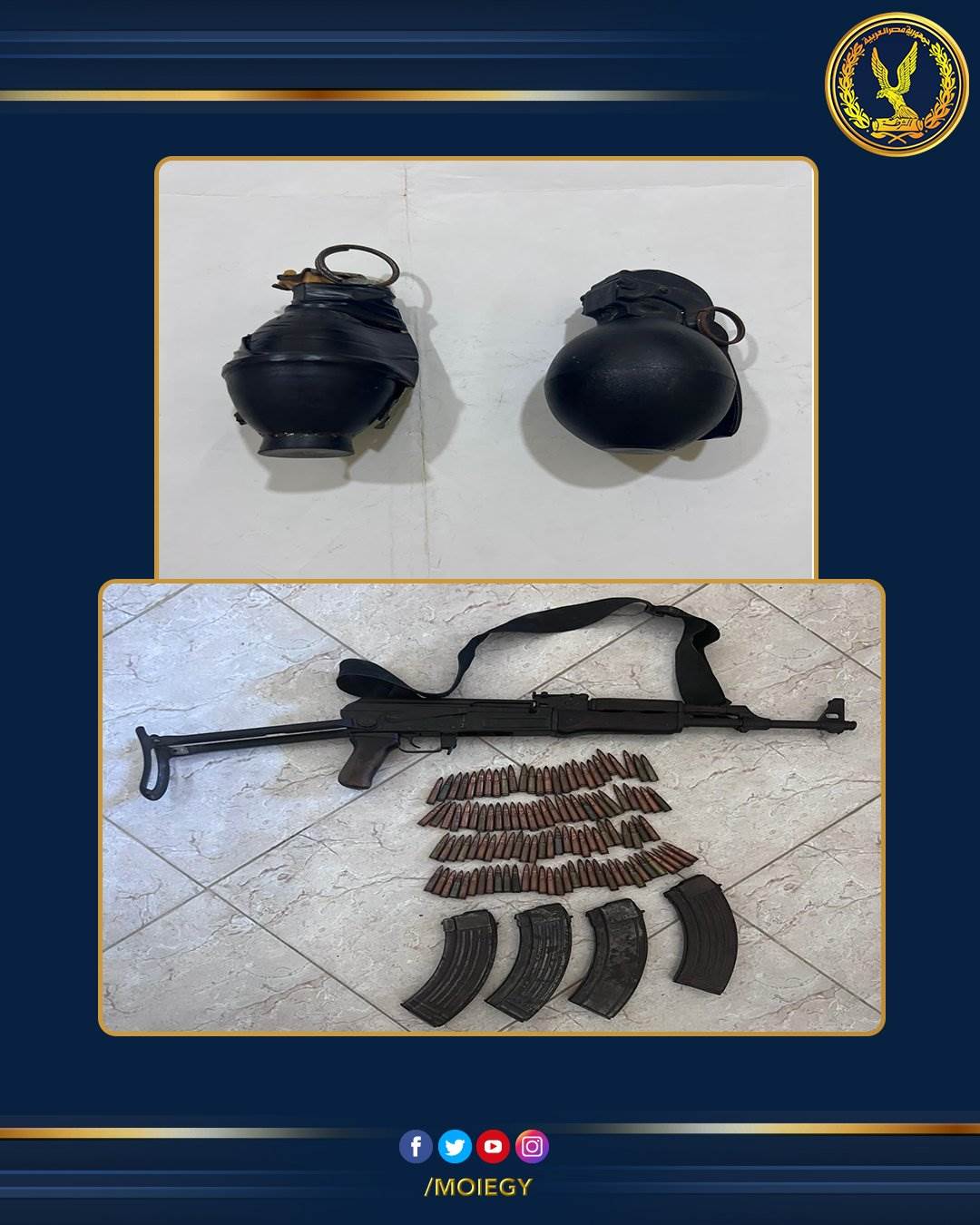 على جانب آخر، تابعت الإدارة العامة لمكافحة المخدرات بقطاع مكافحة المخدرات والأسلحة والذخائر غير المرخصة بالتنسيق مع قطاعى (الأمن الوطنى – الأمن العام) وبالإشتراك مع قطاع الأمن المركزى ومديريتى أمن الإسماعيلية – أسيوط) والإدارة العامة لتدريب كلاب الأمن والحراسة نشاط (عدة عناصر إجرامية) تخصصوا فى الإتجار بالمواد المخدرة وترويجها على عملائهم متخذين من دوائر مراكز شرطة (القصاصين – الإسماعيلية" بالإسماعيلية – البدارى بأسيوط) مسرحاً لمزاولة نشاطهم غير المشروع.. وعقب تقنين الإجراءات أمكن تحقيق النتائج الإيجابية التالية: