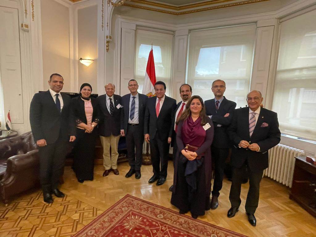 حضر الاجتماع من جمعية الأطباء المصريين في بريطانيا الدكتور ضياء الدين كامل، رئيس الجمعية وأستاذ علم الأمراض بجامعة أنجليا روسكين، والدكتور السيد محمد لطيف رئيس مجلس إعادة الجمعية واستشاري جراحة الأنف والأذن والحنجرة، والدكتور سامح كامل هندي، أمين عام الجمعية، واستشاري جراحة العيون، والدكتورة أماندا إسحاق، عضو مجلس الأمناء، استشاري الأشعة، والدكتور أحمد نصيف، عضو مجلس إدارة الجمعية واستشاري جراحة الأوعية الدموية والباطنة، والدكتورة سالي كمال الدين، عضو مجلس إدارة الجمعية، والدكتورة ليلى أبو زكري عضو مجلس الإدارة وكبير الممارسين العامين في لندن.