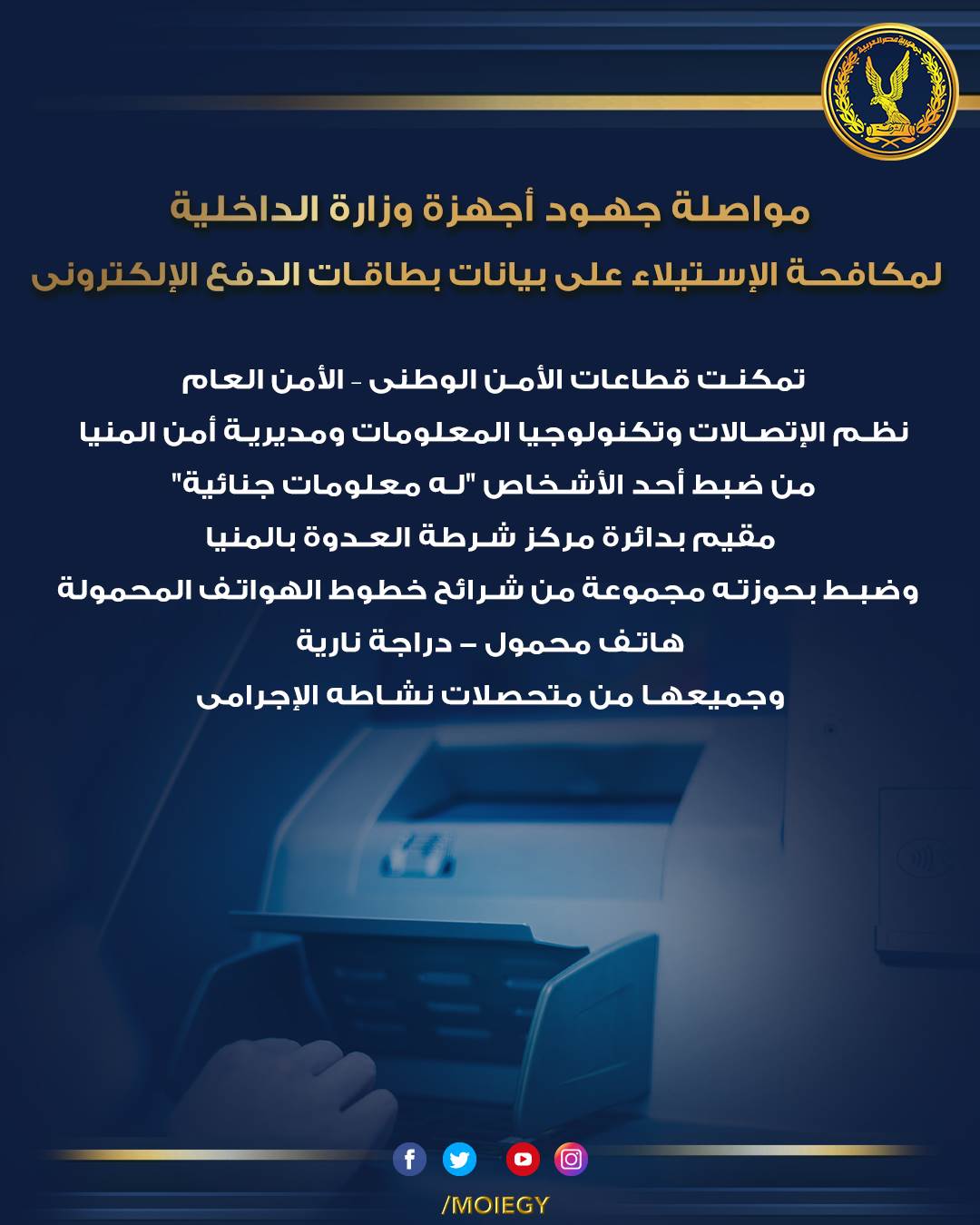 بعد انتشار سرقتها..وزارة الداخلية تواصل جهودها لمكافحة الاستيلاء على بطاقات الدفع الالكتروني