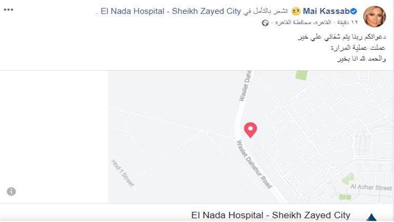 كتبت الفنانة مي كساب عبر صفحتها الرسمية بموقع التواصل الاجتماعي “فيسبوك”: “دعواتكم ربنا يتم شفائي على خير.. عملت عملية المرارة.. والحمدلله أنا بخير”.