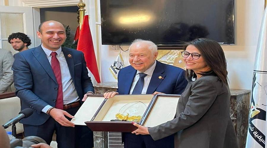 وفي نهاية، الجلسة الحوارية، تسلم الدكتور طلال أبو غزالة، درع التنسيقية من نيفين اسكندر، عضو التنسيقية.