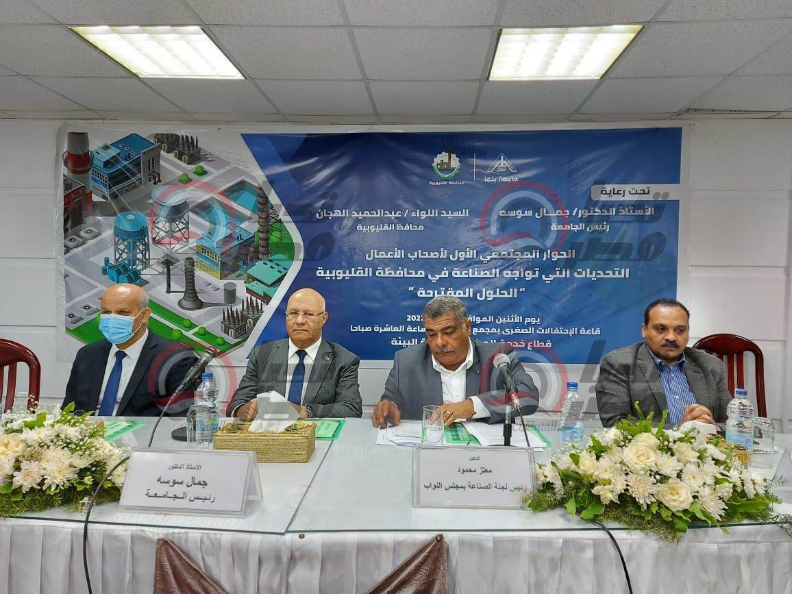 جاء ذلك خلال مشاركته فى الحوار المجتمعى الأول لأصحاب الأعمال "التحديات التى تواجه الصناعة فى محافظة القليوبية.. الحلول المقترحة" الذى نظمته جامعة بنها ، بحضور الدكتور جمال سوسة رئيس جامعة بنها، والدكتور جمال مغربى المشرف على قطاع المجتمع وتنمية البيئة، والدكتور ناصر الجيزاوى نائب رئيس الجامعة لشئون البحث العلمى والدكتور تامر سمير نائب رئيس الجامعة لشئون التعليم والطلاب، والدكتور أيمن سمير فريد مدير مكتب دعم الابتكار ونقل وتسويق التكنولوجيا، ورانيا عيسى الأمين العام المساعد للجامعة، وممثلو مجتمع الأعمال بالقليوبية، وأدار الحوار الدكتور عمرو وصفى وكيل كلية الهندسة.
