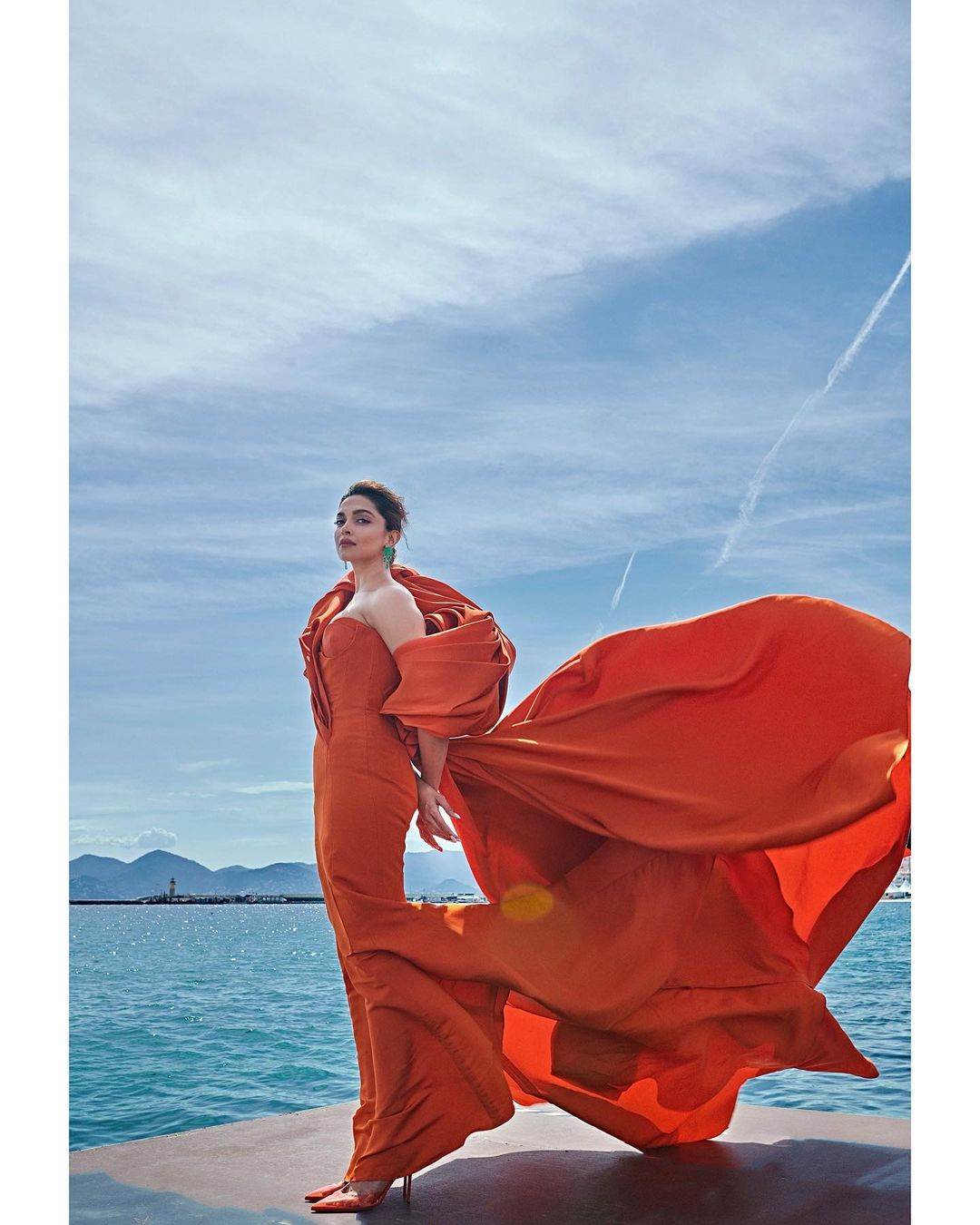 وظهرت دبيكا باديكون خلال المهرجان بإطلالة مبهجة للغاية اذ ارتدت فستان باللون البرتقالي الذي يعد أحد ألوانات الصيف المبهجة، به نفشة كبيرة من الظهر، ووضع مكياجا هادءا مع ارتداء حلق باللون الأخضر ورفع شعرها ليتناسب مع إطلالتها.