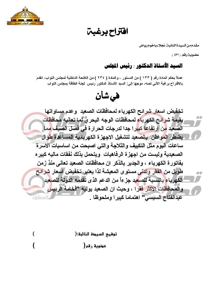 وأوضحت عضو لجنة التضامن الاجتماعي بمجلس النواب، النائبة نجلاء باخوم، فى الاقتراح برغبة المقدم منها، أن محافظات الصعيد تعاني من ارتفاعا كبيرا فى لدرجات الحرارة في فصل الصيف، مما يضطر المواطن بالصعيد لتشغيل الأجهزة الكهربائية المساعدة طوال ساعات اليوم مثل، التكييف والثلاجة والتي اصبحت من أساسيات الاسرة الصعيدية وليست من اجهزة الرفاهيات، ويتحمل بذلك نفقات ماليه كبيره بفاتورة الكهرباء.