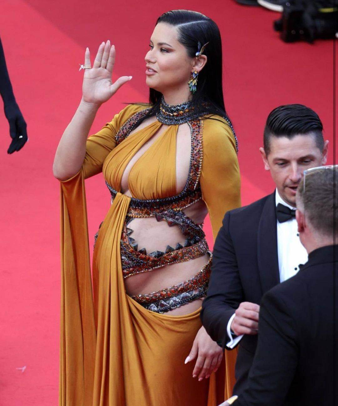 أدريانا ليما بإطلالة غريبة تبرز حملها في مهرجان كان السينمائي «صور»