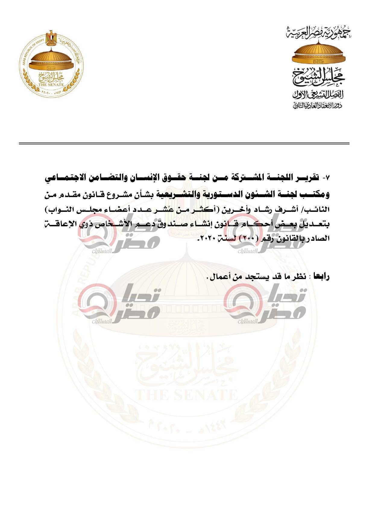 الإسبوع القادم...الشيوخ ينظر مشروع قانون مستقبل وطن بشأن قادرون بإختلاف..ويبدأ مناقشة خطة التنمية«صور»