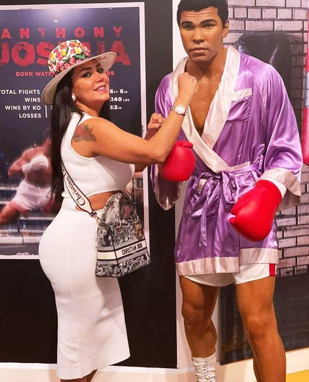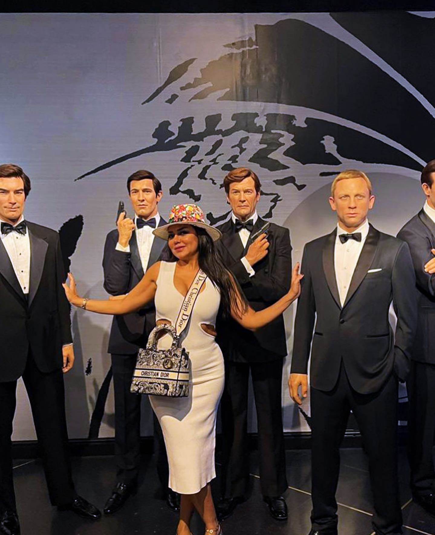ظهرت الفنانة رانيا يوسف في الصور التي نشرتها عبر صفحتها الرسمية بموقع التواصل الاجتماعي لتبادل الصور والفيديوهات انستجرام، برفقة مجموعة من التماثيل للمشاهير ونجوم هوليود.