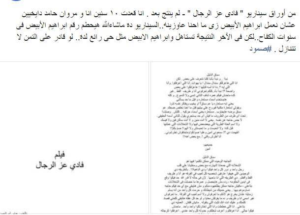 وعلق عباس أبو الحسن على الصور قائلًا: "من أوراق سيناريو فادي عز الرجال، لم ينتج بعد أنا قعدت 10 سنين أنا و مروان حامد دايخيين عشان نعمل إبراهيم الأبيض زى ما أحنا عاوزينه"