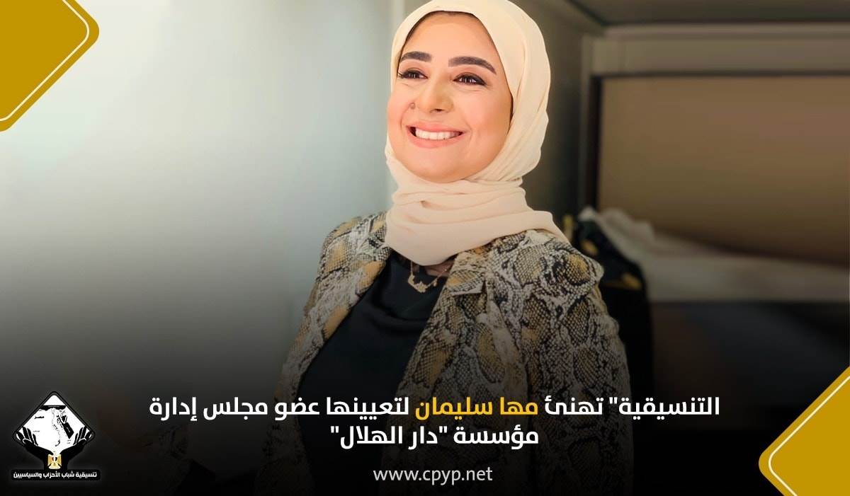 هنأت تنسيقية شباب الأحزاب والسياسيين، الزميلة مها سليمان حسن مرعي عضو التنسيقية، لتعيينها من قبل الهيئة الوطنية للصحافة عضواً بمجلس إدارة مؤسسة دار الهلال.