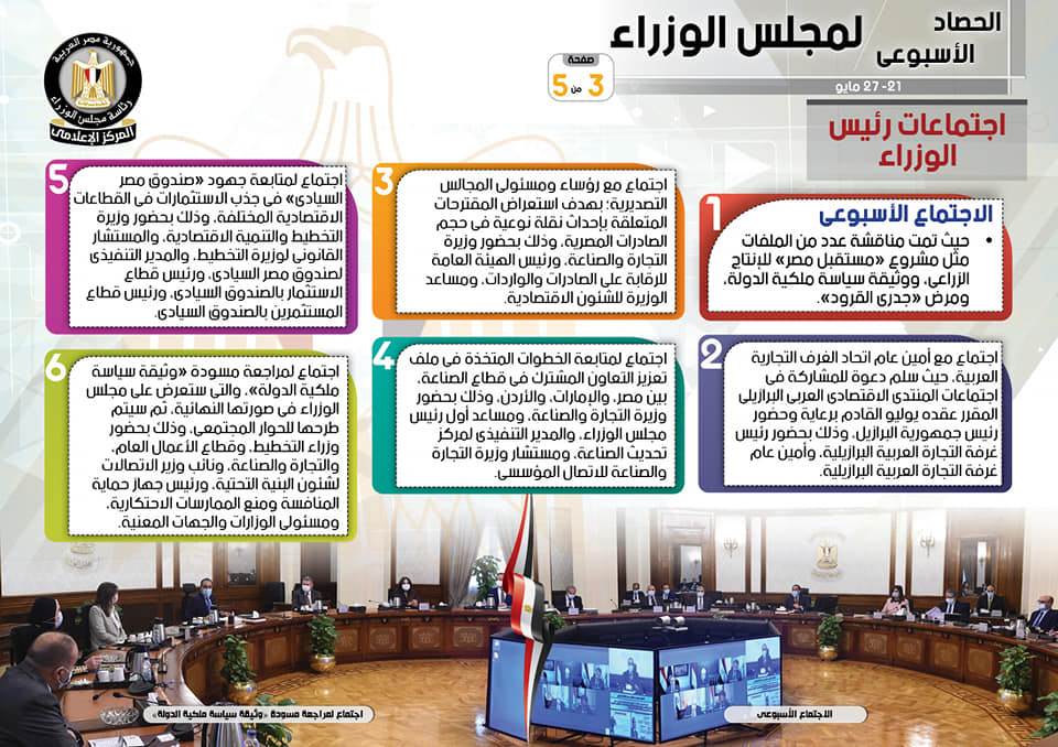 مراجعة «وثيقة سياسة ملكية الدولة» وتعزيز التعاون بين المستثمرين المصريين والأمريكيين.. «الوزراء» يصدر حصاده الأسبوعي من 21 حتى27 مايو 2022