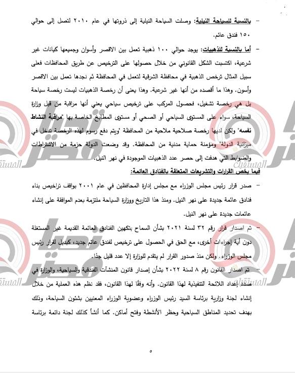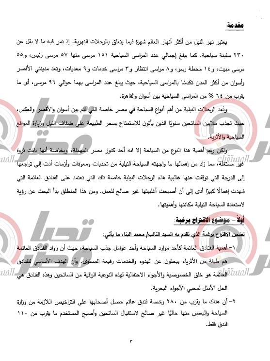 وطالب النائب محمد البنا بمنح تراخيص مباشرة للمستثمرين الجادين لإقامة فنادق عائمة حديثة بها كل متطلبات السياحة، ومراجعة مستمرة للفنادق العائمة والاطمئنان بأن بها كل المقومات الحديثة لترضي متطلبات السائحين .