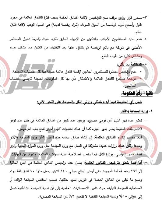 2- ضرورة العمل على الاستفادة من الفنادق العائمة التي لا تعمل إذا كانت صالحة لذلك .
