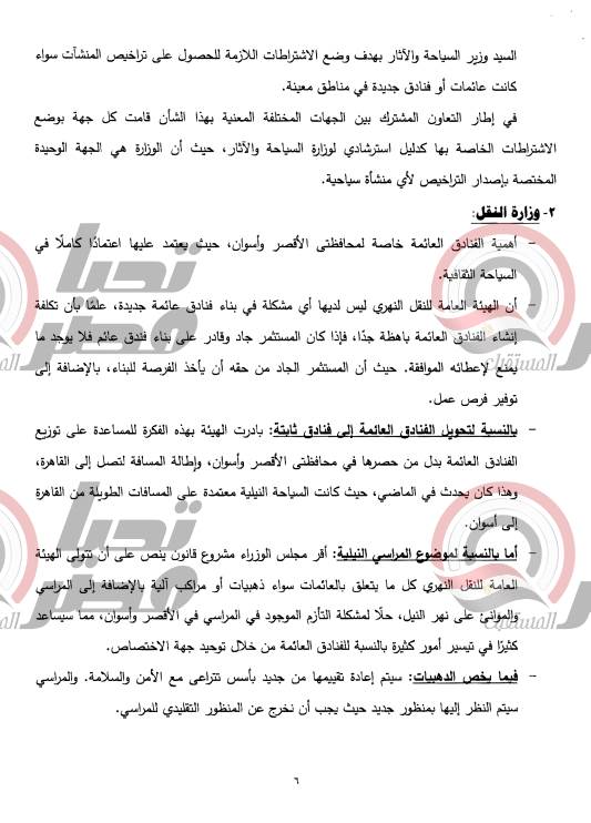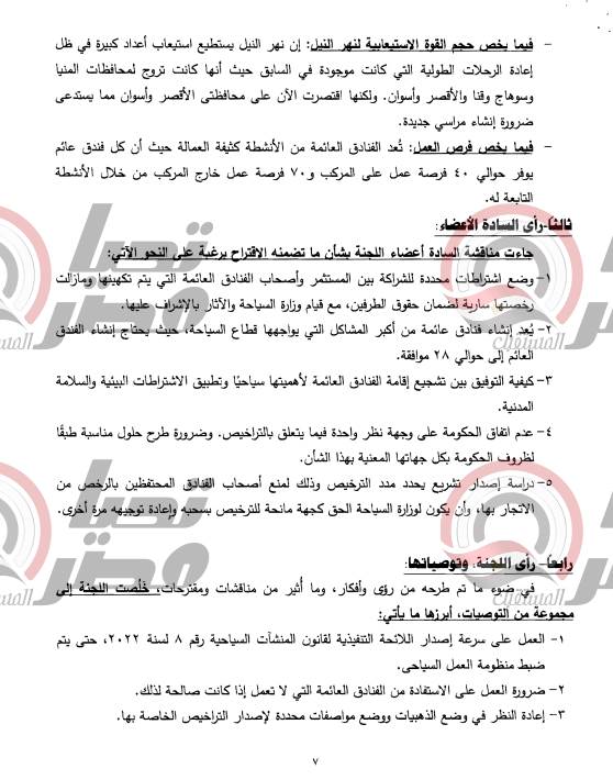 1- العمل على سرعة إصدار اللائحة التنفيذية لقانون المنشآت السياحية رقم 8 لسنة ٢٠٢٢ ، حتى يتم ضبط منظومة العمل السياحي .