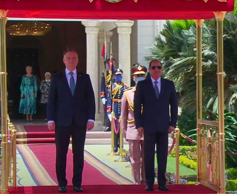وكان قد وصل الرئيس البولندي برفقة قرينته إلى قصر الإتحادية، حيث شارك في الاستقبال، الئريس السيسي والسيدة انتصار السيسي قرينة الرئيس.