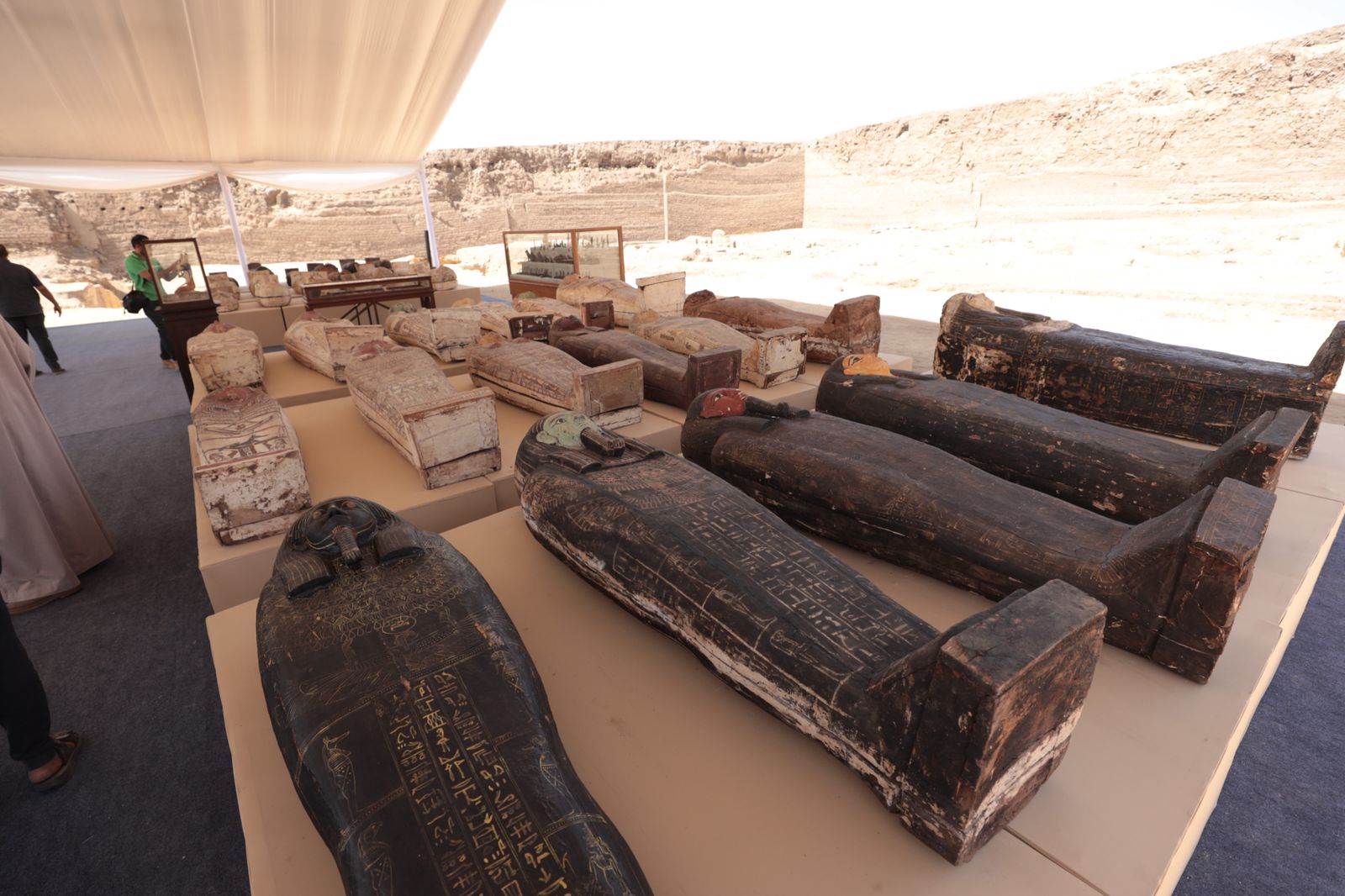 وأشار إلى أنه تم اكتشاف مجموعة جديدة من آبار الدفن ضمت 250 تابوتًا خشبيًا ملونًا يرجع إلى سنة 500 ق.م تقريبا، وبداخلها مومياوات بحالة جيدة، كذلك عدد من التمائم وتماثيل خشبية ذو وجه مذهب، بالإضافة، اكتشاف بردية بحالة جدية تحتوي على فصول من كتاب الموتى، تم نقلها لمعامل الترميم بالمتحف المصري بالتحرير؛ لتعقيمها وترطيبها ودراستها لمعرفة ما تحتويه من نصوص.