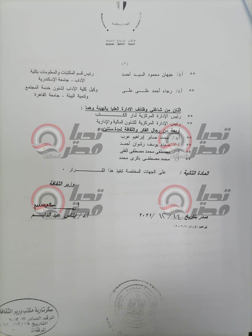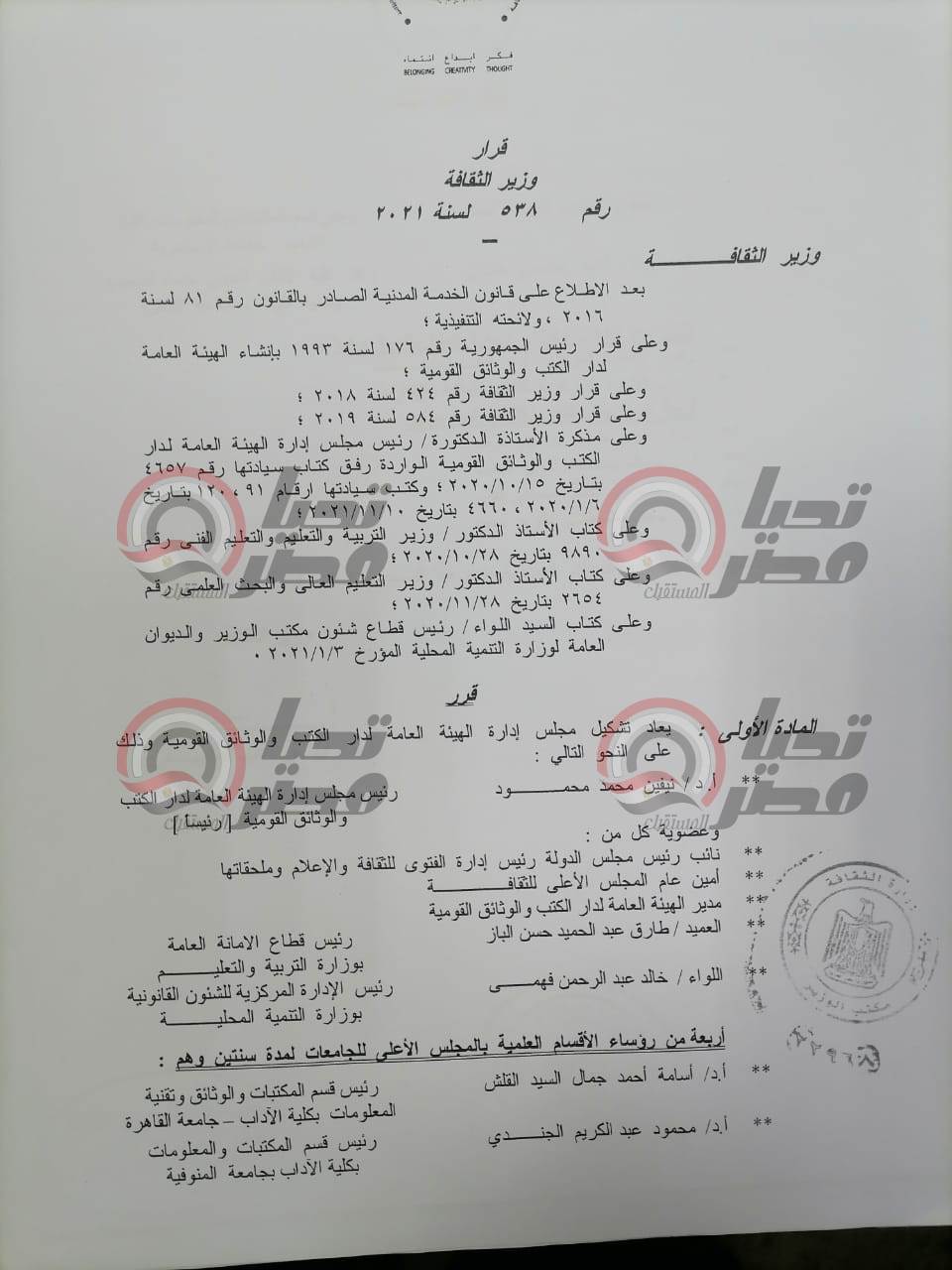 أصدرت الدكتورة ايناس عبدالدايم، وزيرة الثقافه قرار بإعادة تشكيل مجلس إدارة الهيئة العامة لدار الكتب والوثائق القومية، برئاسة الدكتورة نيفين موسي.