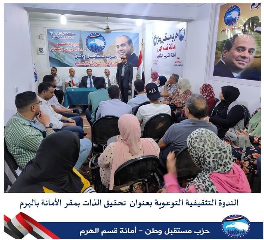 واصلت أمانات مراكز كرداسة والعياط والبدرشين، حملتهم لتطعيم الأهالي ضد فيروس كورونا تضامنًا مع مبادرة طرق الأبواب، لمن هم أكبر من سن 12 عام خلال الفترة من 22 مايو إلى 2 يونيو 2022 بالرقم القومي والفرق منتشرة في كل مكان بجميع القري والتوابع من خلال فرق مدربة جيدا، مع زيادة القوافل الطبية المخصصة للحصول على اللقاحات وذلك تزامنا مع البدء في تكثيف جهود التوعية بمخاطر الفيروس وأهمية مساندة جهود الدولة بحصول المواطنين على التطعيم، ومن جانب آخر، عقدت أمانة قسم الهرم، ندوة تثقيفية بعنوان "كيفية تحقيق الذات" بمقر الأمانة بالهرم، وبدأت فعاليات الندوة علي أهمية دور الأمانة في نشر الوعي الثقافي والسياسي والاجتماعي بين أهالي وأبناء الهرم ايمانا من الأمانة بضرورة التكاتف مع المواطنين للمساهمة في تحقيق استقرارهم علي كافة الأصعدة قدر المستطاع، ومن جانبه، نظمت أمانة قسم إمبابة، دورة "إعرفى حقك القانونى" والتى تهدف إلى معرفة المرأة بحقوقها القانونية مثل " كتابة قائمة المنقولات الزوجية و ثغرات عقد البيع وطريقة كتابته"، وفي الوقت نفسه