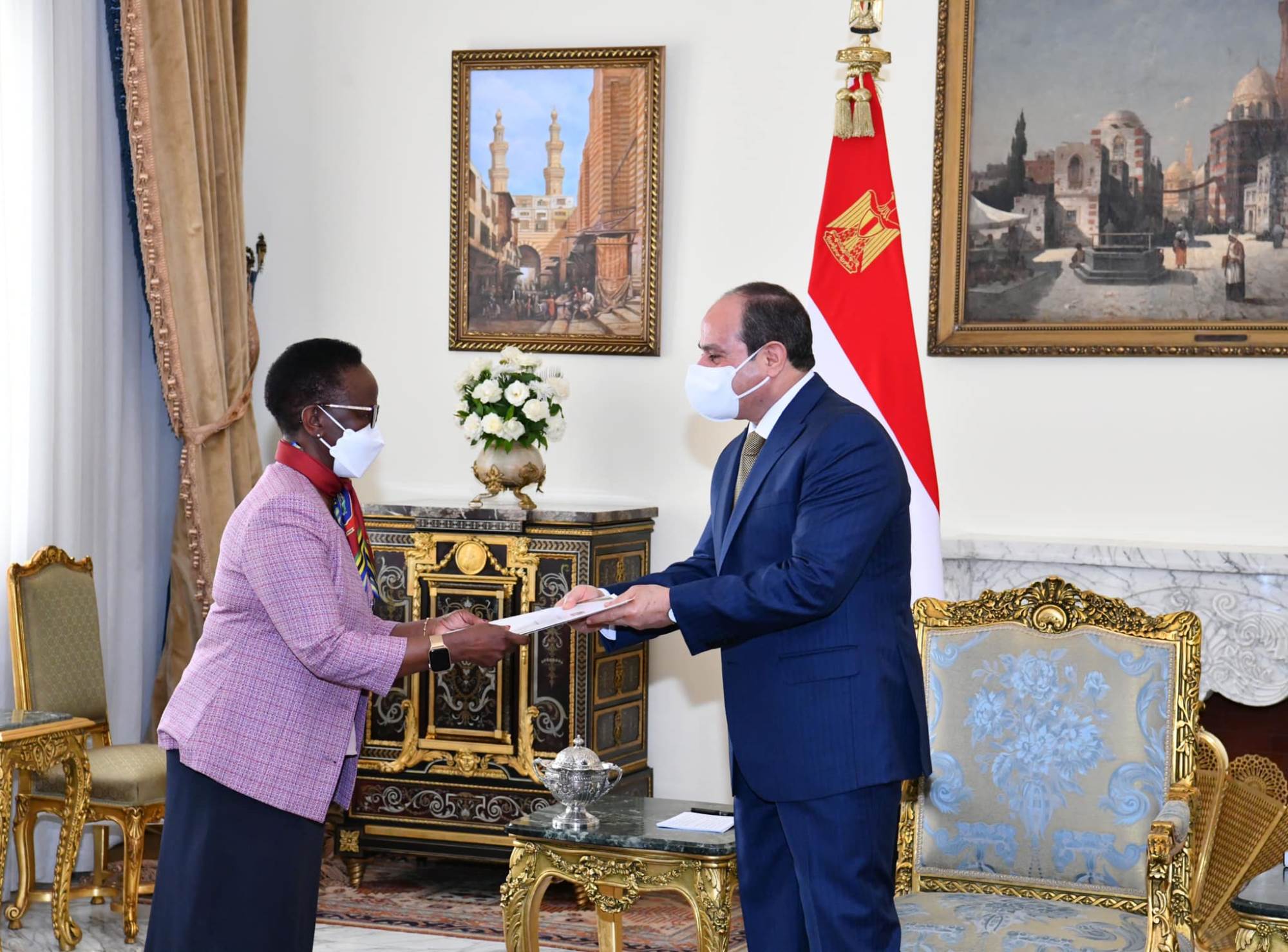 من جانبها؛ نقلت وزيرة الخارجية التنزانية رسالة خطية إلى الرئيس من رئيسة تنزانيا سامية حسن، تضمنت الإعراب عن تقدير تنزانيا الكبير لعلاقاتها التاريخية العميقة مع مصر، والحرص على الاستمرار في الارتقاء بأطر التعاون بين الجانبين، والتطلع للاستفادة من الخبرة المصرية العريضة في مجال المشروعات التنموية العملاقة، كما تضمنت الرسالة الإشارة إلى الموقف التنفيذي ومستجدات التعاون المشترك مع مصر لإنشاء سد "جوليوس نيريري" لتوليد الطاقة الكهرومائية في تنزانيا.