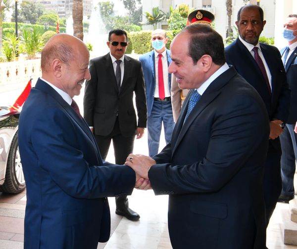 وصرح المتحدث الرسمي باسم رئاسة الجمهورية بأن الرئيس رحب بأخيه رئيس مجلس القيادة الرئاسي اليمني ضيفاً عزيزاً على مصر، مهنئاً إياه بتوليه مهام منصبه، ومتمنياً له التوفيق في مواجهة التحديات التي تواجه اليمن، والمضي قدماً في العملية السياسية بنوايا مخلصة هدفها مصلحة اليمن في المقام الأول، وصولاً إلى حل مستدام ينهى معاناة الشعب اليمني الشقيق ويلبي طموحاته.