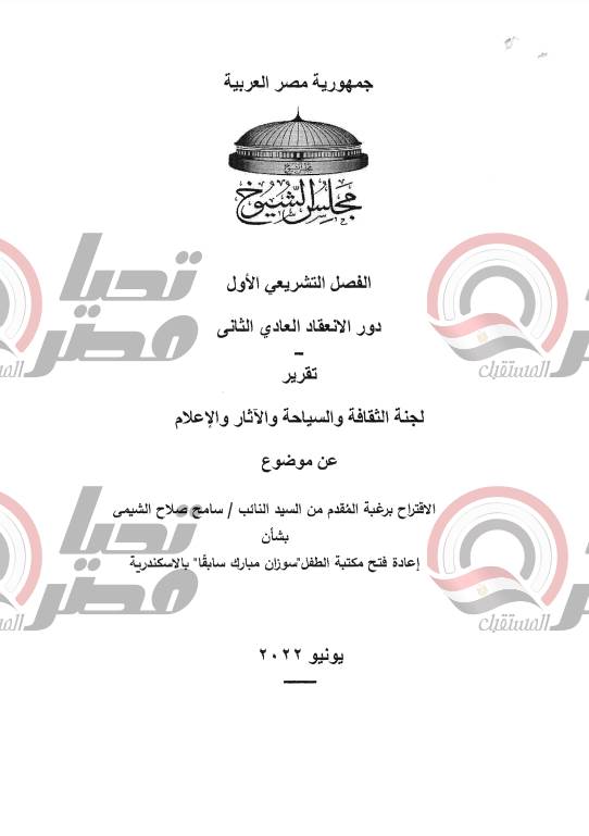الشيوخ يحيل مقترح النائب سامح صلاح الشيمي لإعادة فتح مكتبة الطفل بالإسكندرية للحكومة