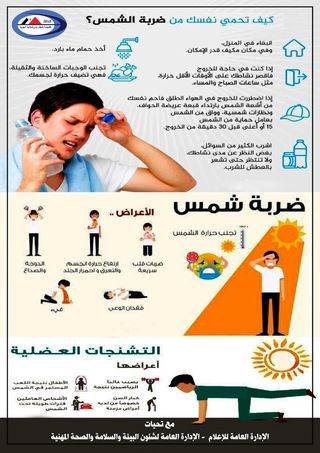 ومن ناحية أخرى قامت الإدارة العامة لشؤون البيئة والسلامة والصحة المهنية بالتعاون مع الإدارة العامة للإعلام بالشركة القابضة للمطارات والملاحة الجوية بنشر ملصقات إرشادية للتوعية بطرق الوقاية من ضربات الشمس واكتشاف أعراضها وكيفية التعامل مع درجات الحرارة المرتفعة داخل وخارج بيئة العمل.أقامت الإدارة العامة لشئون البيئة والسلامة و الصحة المهنية بالتعاون مع صندوق علاج ومكافحة الإدمان والتعاطي ندوة بعنوان " اليات وطرق مكافحة الإدمان في ظل القوانين ذات الصلة".