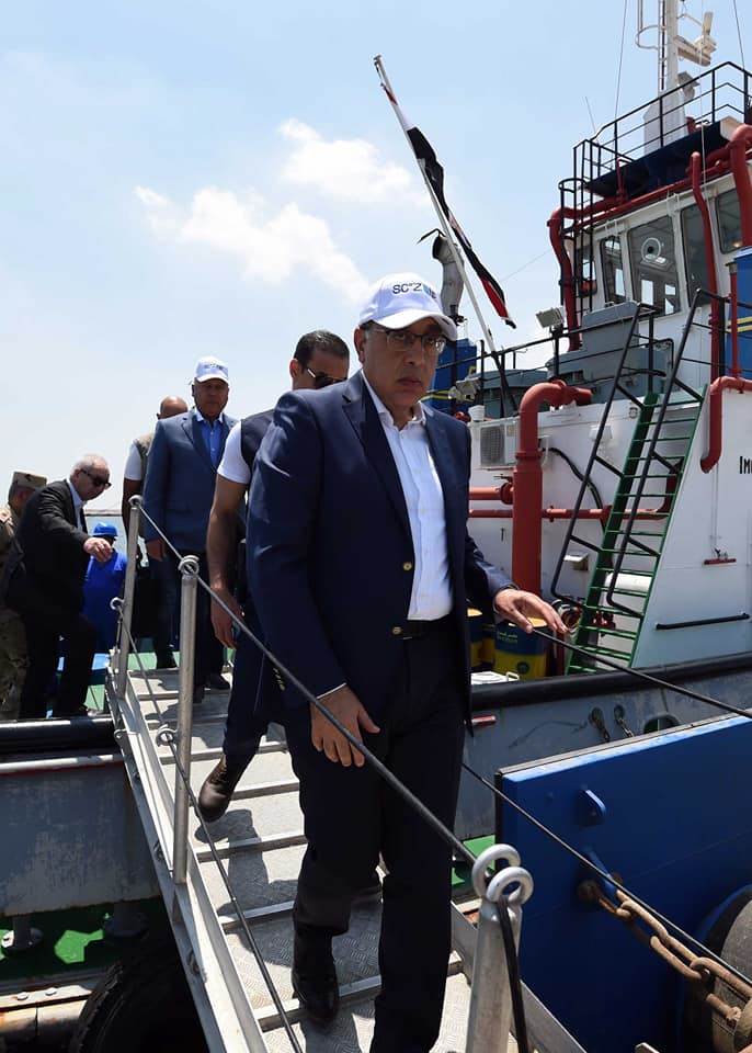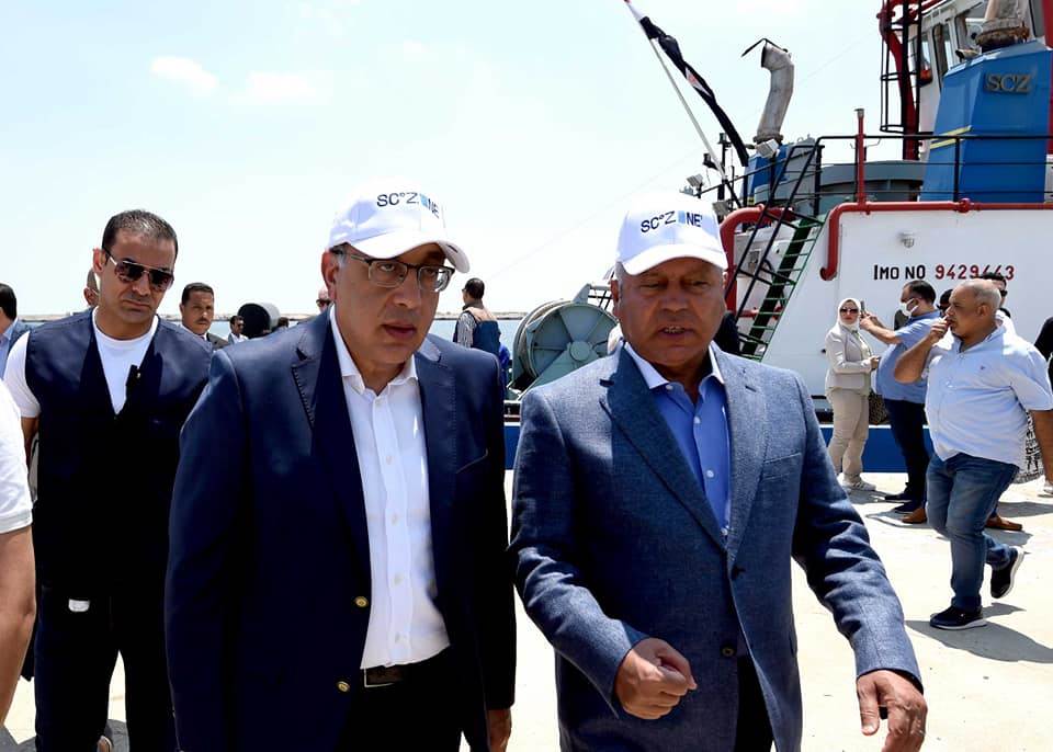 وبدأ رئيس الوزراء الجولة بزيارة ميناء شرق بورسعيد، حيث تفقد الأرصفة الغربية بالميناء، لمتابعة آخر مستجدات أعمال التطوير الجارية بها، واستمع لعرض تفصيلي من المهندس يحيى زكي، الذي أشار إلى أن "ميناء شرق بورسعيد" يعدُ واحداً من أهم موانئ البحر المتوسط، نظراً لموقعه المتميز على المدخل الشمالي لقناة السويس، حيث يحتوي الميناء على أرصفة حاويات بطول 7.4 كم، وغاطس بعمق 18م، حيث قامت المنطقة الاقتصادية بالعديد من أعمال البنية التحتية الخاصة برفع كفاءة الميناء، عن طريق أعمال تحسين التربة، وتنفيذ ساحات تداول للأرصفة الجديدة، إضافة إلى أعمال المياه والصرف والاتصالات، وشهدت الأرصفة الجديدة بعد انتهاء تنفيذ الساحات العديد من التعاقدات وأبرزها تعاقد أكبر تحالف ياباني فرنسي لإنشاء محطة دحرجة المركبات (RORO) وهي محطة مخصصة للسيارات (محطة قناة السويس لتداول السيارات)، وسيقوم بإدارتها تحالف فرنسي ـ ياباني، مما يحقق أهداف اقتصادية قناة السويس من العمل على سد احتياجات السوق المحلية والإقليمية من هذه المشروعات.