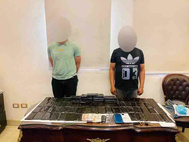 وفي نفس الجانب وأثناء مرور قوة أمنية تابعة لمديرية أمن القاهرة لتفقد الحالة الأمنية بدائرة قسم شرطة الشروق ، تمكنت من ضبط شخصين ، مقيمان بنطاق محافظتى "القليوبية – الإسماعيلية" وذلك حال إستقلالهما إحدى السيارات قيادة أحدهما ، وبحوزتهما كمية من مخدر الحشيش وزنت 9٫5 كيلو جرام – مبلغ مالى – 3 هواتف محمولة.