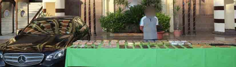 عقب تقنين الإجراءات تم إستهدافه وأمكن ضبطه حال إستقلاله سيارة بدائرة قسم شرطة النزهة بالقاهرة ، وبحوزته 510 طربة لمخدر الحشيش وزنت 51 كيلو جرام – بندقية خرطوش – عدد من الطلقات النارية مختلفة الأعيرة – ملصقات وإسطمبات خشبية - مبلغ مالى – 3 هاتف محمول، وبمواجهته بالمضبوطات أيد ما جاء بالتحريات .