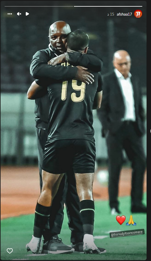 ودع مجدي أفشة لاعب النادي الأهلي، الجنوب إفريقي بيتسو موسيماني المدري الفني السابق للمارد الأحمر، بعد رحيله عن تدريب الشياطين الحمر.