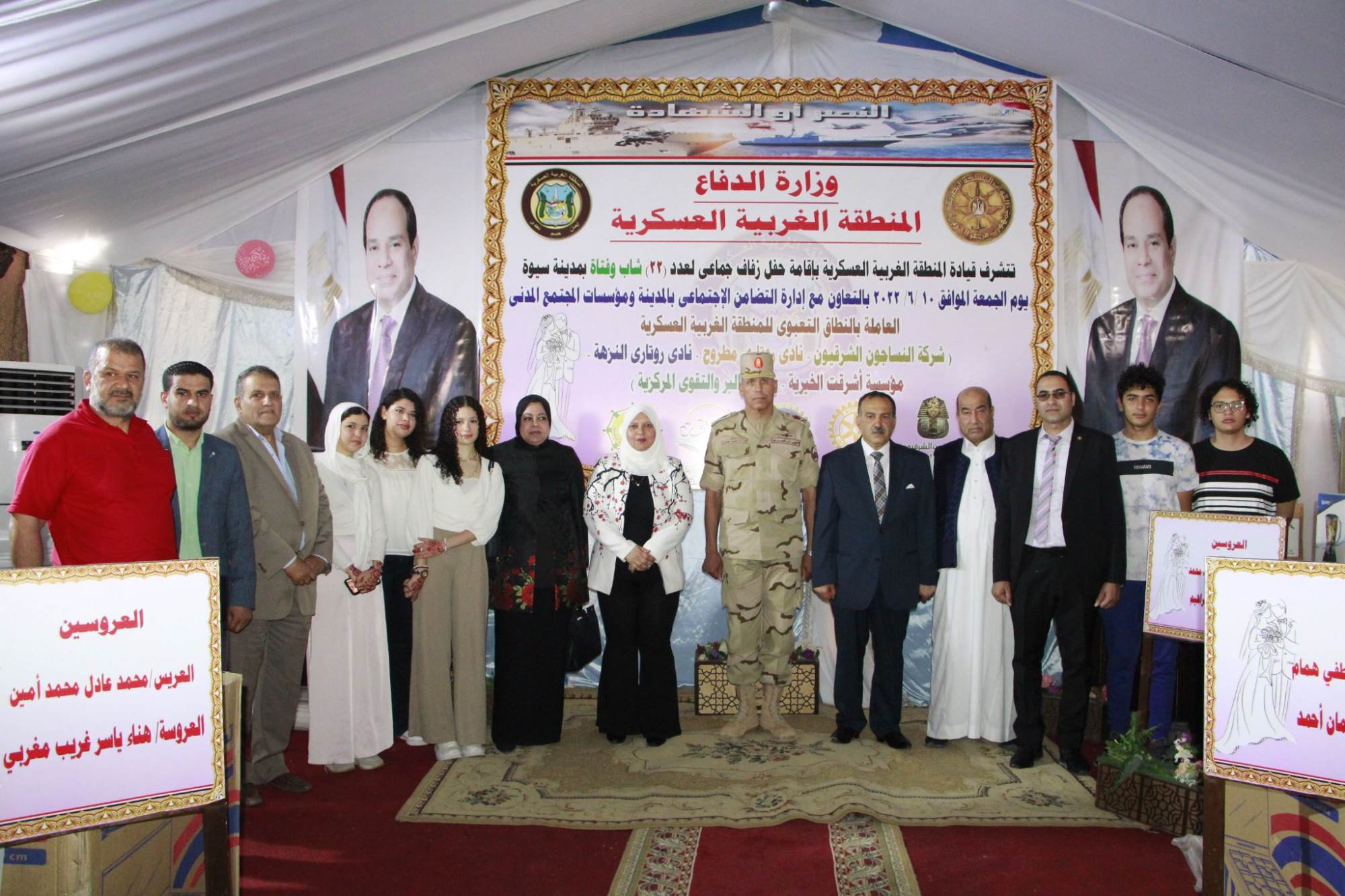 نظمت المنطقة الغربية العسكرية، حفل زفاف جماعي لعدد 22 شاب وفتاة بمدينة سيوة بالتعاون مع وزارة التضامن الاجتماعي ومؤسسات المجتمع المدني، في إطار حرص القيادة العامة للقوات المسلحة على دعم المجتمع المدني، وزيادة أواصر الترابط بين أبناء الشعب المصري وقواته المسلحة.