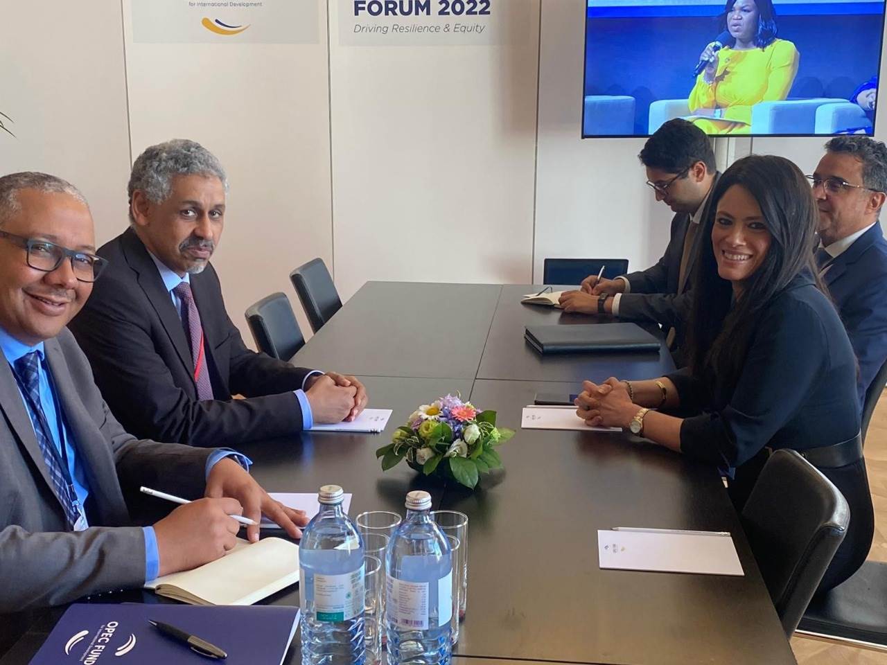 في سياق آخر التقت وزيرة التعاون الدولي، عبد الحميد الخليفة، المدير العام لـصندوق أوبك للتنمية الدولية أوفيد، حيث تم بحث تعزيز مجالات التعاون مع الصندوق في ظل توجه مصر نحو تعزيز التحول الأخضر، ومناقشة مجالات التعاون في ضوء استعداد مصر لاستضافة مؤتمر الأمم المتحدة للمناخ COP27 من خلال مجموعة التنسيق العربية. وتضم مجموعة التنسيق العربية صندوق أبوظبى للتنمية، والمصرف العربى للتنمية الاقتصادية فى إفريقيا، والصندوق العربى للإنماء الاقتصادى والاجتماعى، وبرنامج الخليج العربى للتنمية، وصندوق النقد العربى، والبنك الإسلامى للتنمية، والصندوق الكويتى للتنمية الاقتصادية العربية، وصندوق الأوبك للتنمية الدولية، وصندوق قطر للتنمية، والصندوق السعودى للتنمية.