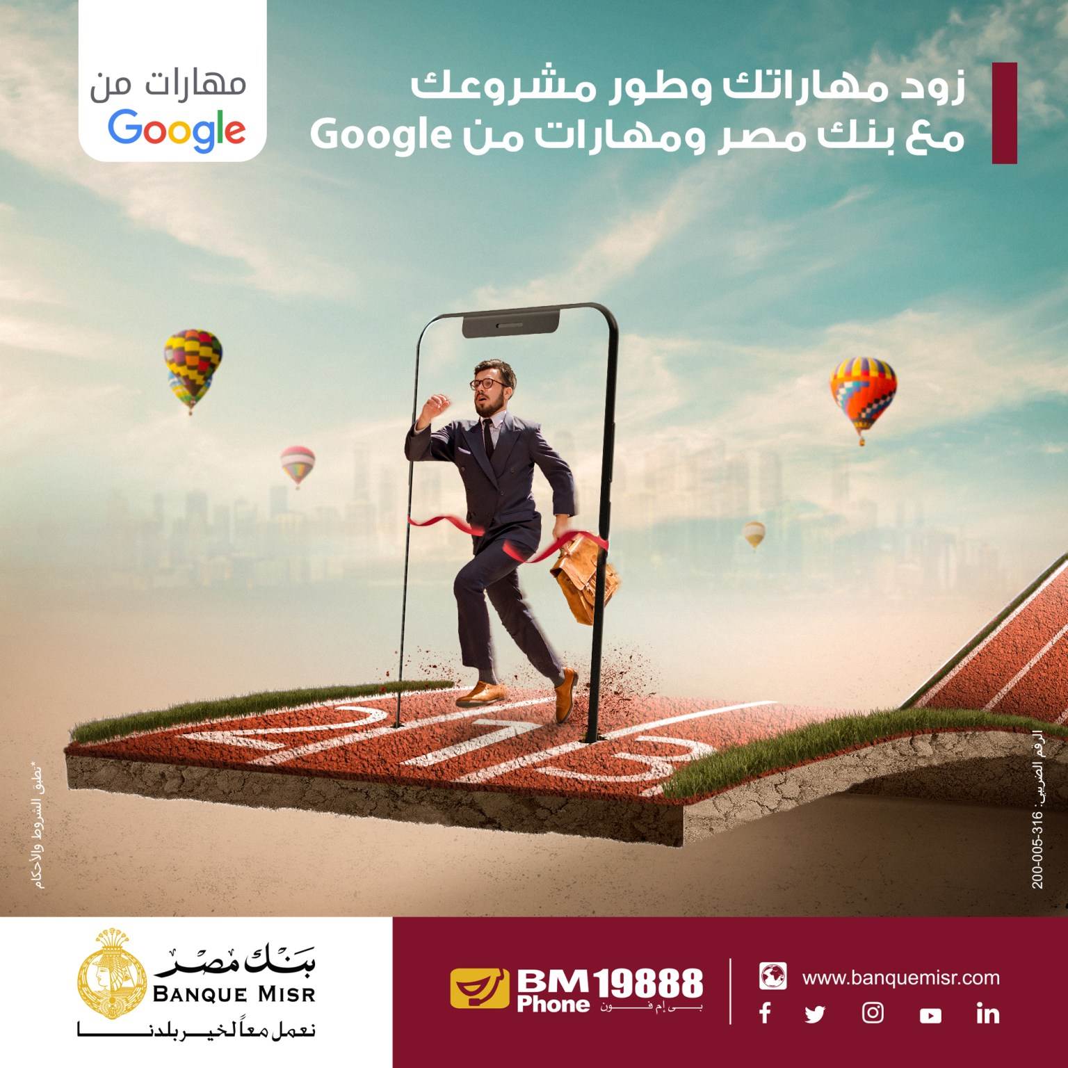 نشر بنك مصر عبر صفحته على موقع "فيسبوك"، إمكانية تقديم دورات تدريبية لأصحاب الشركات الناشئة بالتعاون مع Google لزيادة المهارات والبدء في تطوير مشروعك من خلال تدريبات متنوعة في مجالات التسويق الإلكتروني والإدارة المالية وريادة الأعمال.