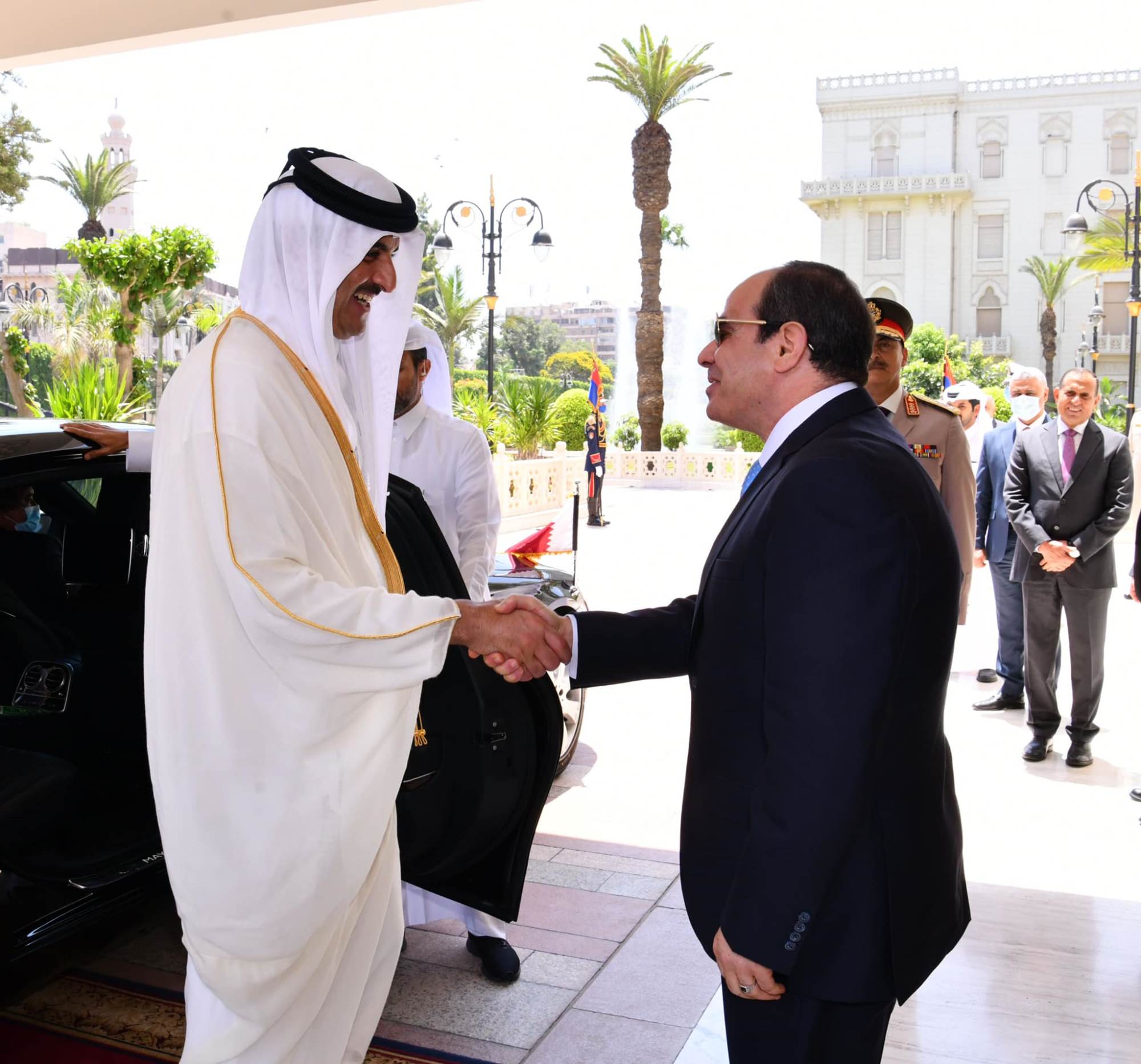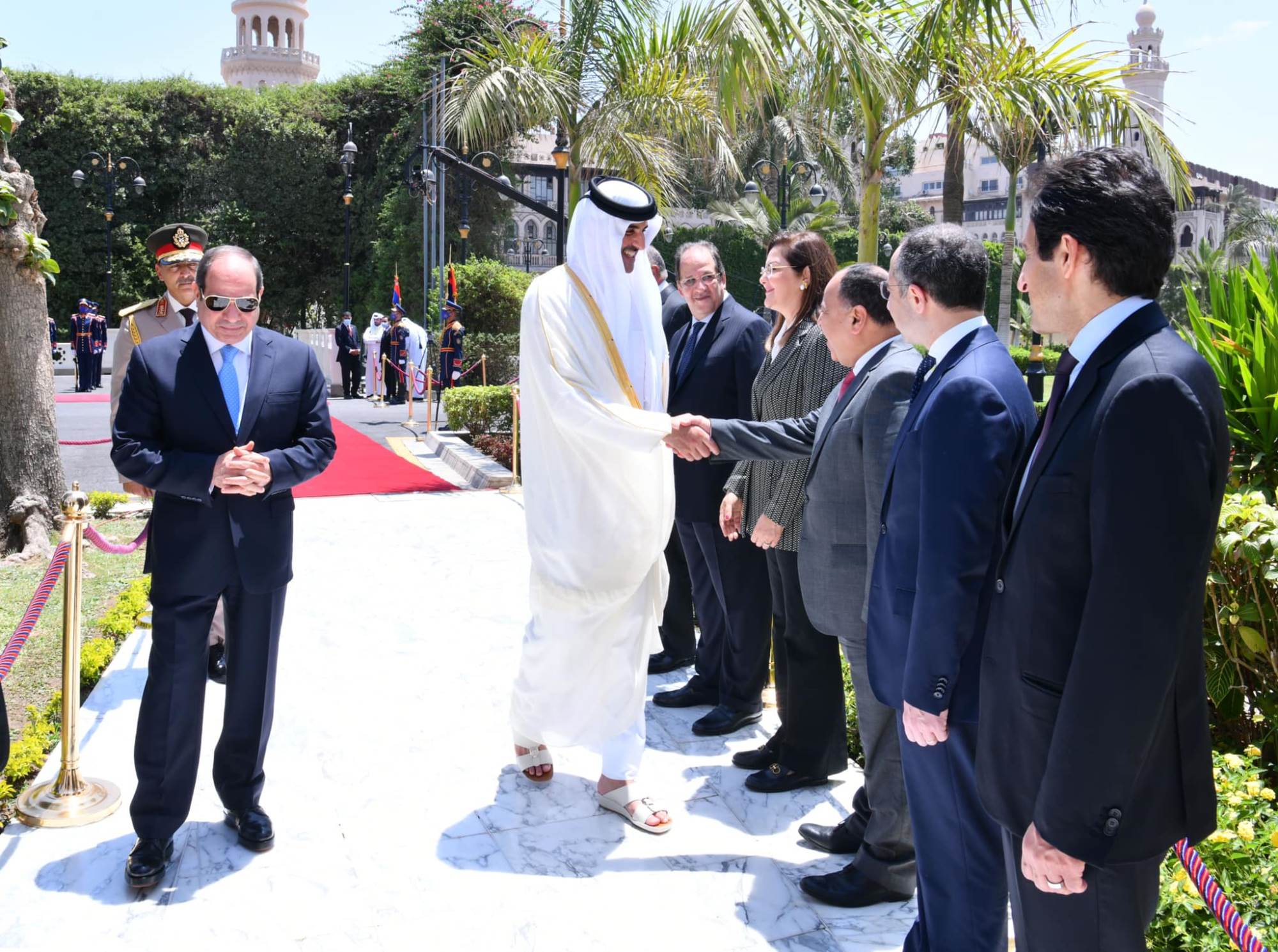 واستقبل الرئيس عبد الفتاح السيسي، مساء أمس بمطار القاهرة، أمير دول قطر الشيخ تميم بن حمد آل ثاني، والذي يحل ضيفًا عزيزًا على مصر في زيارة رسمية تستغرق يومين.