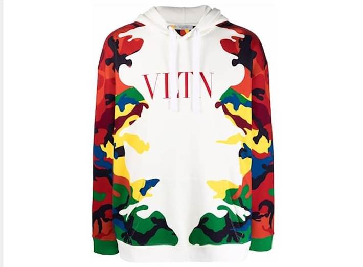وارتدى عفروتو أمس السبت "سويت شيرت" من Valentino باللون الأبيض يدمج ألوان الأحمر والأصفر والأخضر والأزرق والأسود من منطقة الأكمام.