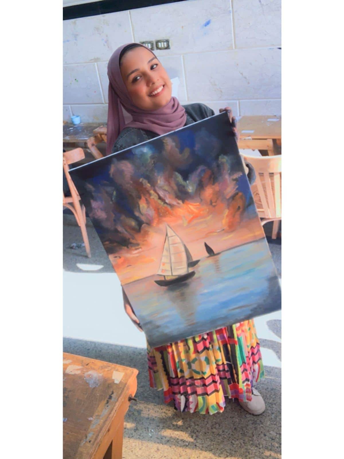 وأردفت «مريم» أفضل ممارسة مجال الفنون المتعددة، فأنا أعشق الرسم والتصوير الزيتي والأشغال اليدوية والنحت، ولكن الرسم والتصوير الزيتي الأقرب إلى قلبي، فقد وضعت حجر الأثاث في تلك المواهب منذ ثلاث سنوات، حتى رسمت لوحة فنية للفنان جوني ديب والعديد من اللوحات المميزة، وقد شاركت في العديد من المعارض بلوحاتي.