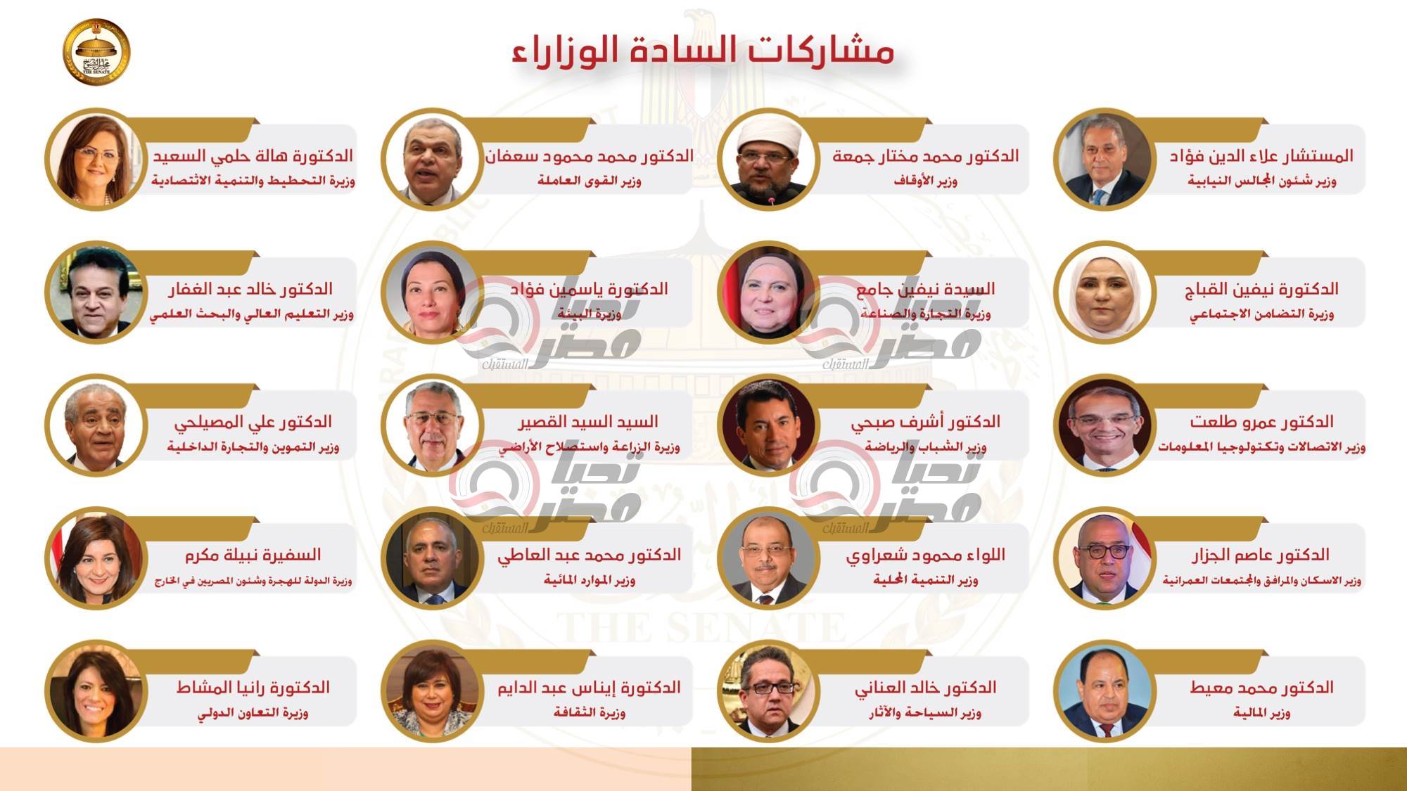 وبلغ عدد الوزراء المشاركين بمجلس الشيوخ خلال دور الانعقاد الثاني 20 وزيرا، وكذلك مشاركة 5 محافظين.وبلغ عدد اجتماعات اللجان النوعية، 699 اجتماعا بواقع 986 ساعة و46 دقيقة.