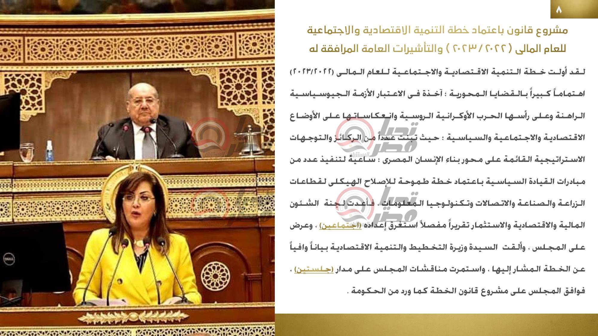 وناقش مجلس الشيوخ في دور الانعقاد الثاني من الفصل التشريعي الثاني، 9مشروعات قوانين جاءت على النحو التالي: التخطيط العام للدولة، التأمين الموحد، رعاية حقوق المسنين، قانون العمل، صندوق الأشخاص ذوي الاعاقة، تعديلات قانون الرياضة، تنظيم ممارسة العمل الاهلي، وخطة التنمية الاقتصادية والاجتماعية للعام المالي ٢٠٢٢/٢٠٢٣.