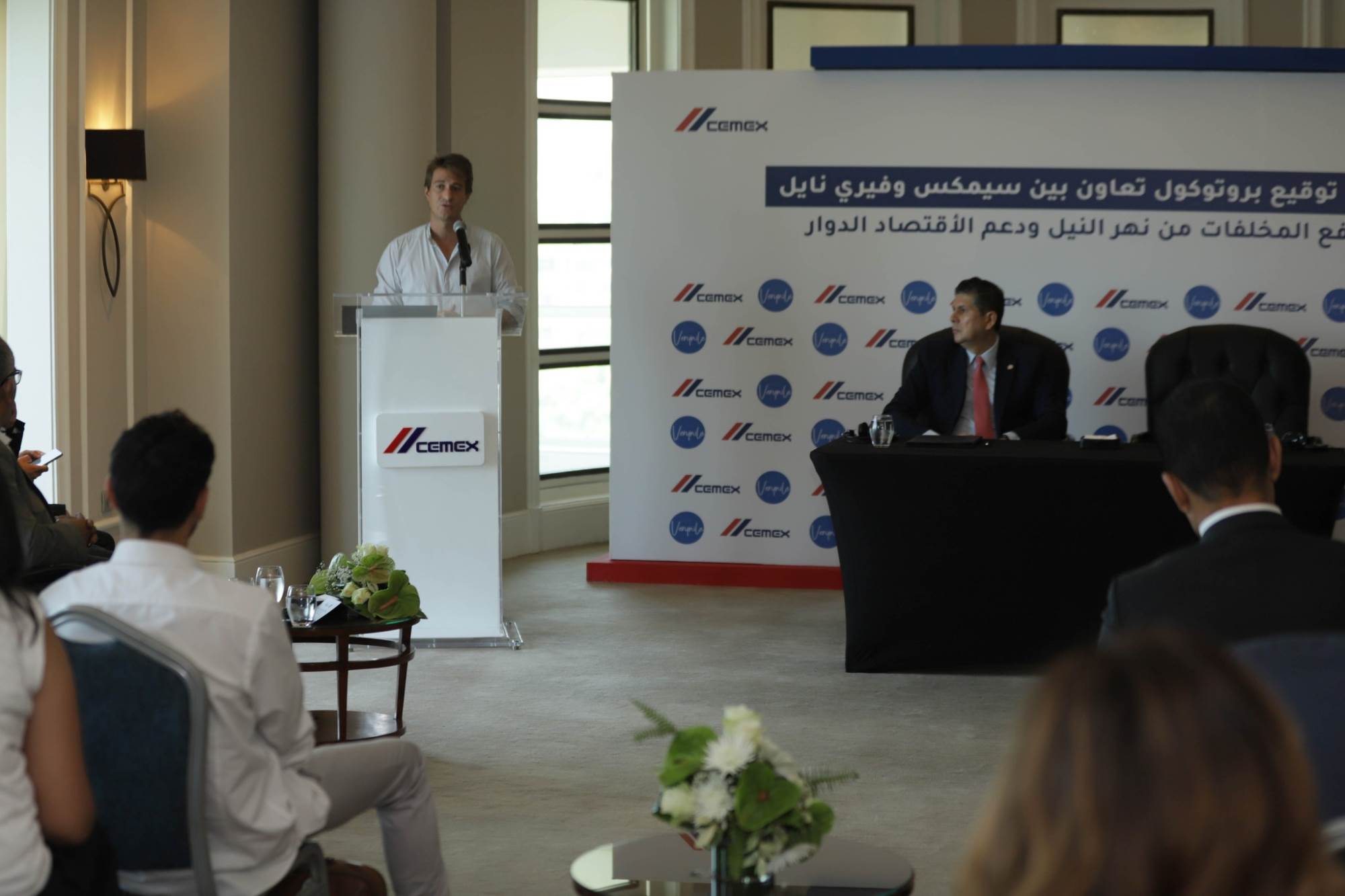 و استضاف رئيس سيمكس مصر والإمارات، كارلوس جونزالز والرئيس التنفيذي لشركة بسيطة - صاحبة مبادرة فيري نايل - ألبان دي مينونفيل، في حدث كبير مطل على النيل، لتوقيع البروتوكول