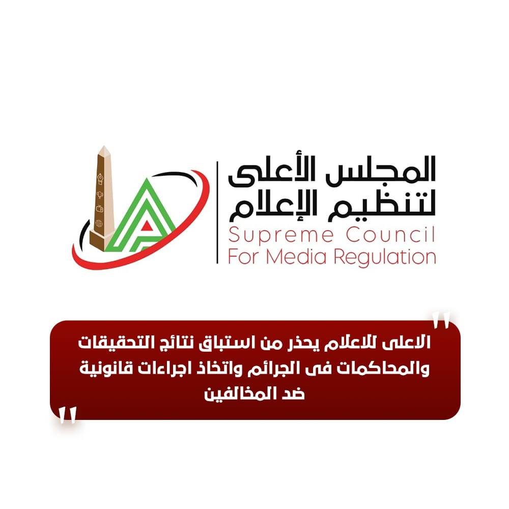 اصدر المجلس الاعلي لتنظيم الاعلام بيانا اكد فيه ضرورة الالتزام بضوابط واخلاقيات نشر الجريمة والتحقيقات الواردة فى الاكواد الاعلامية والمنشورة فى الجريدة الرسمية ومن بين بنودها عدم استباق نتائج التحقيقات والمحاكمات وعدم بث تفاصيل يمكن تؤثرعلي سيرالعدالة ، وعدم النقل عن المصادر المجهلة ووسائل التواصل الاجتماعي، الا بعد التأكد التام من دقة الخبر قبل نشره .