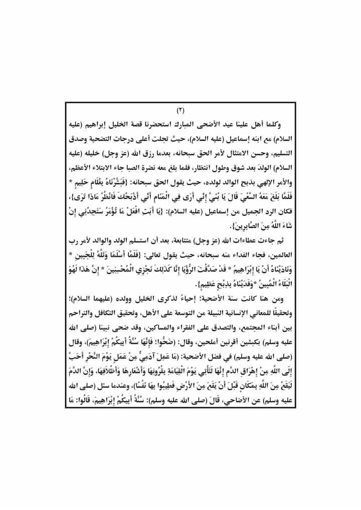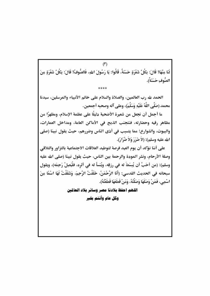 الأوقاف تعلن موضوع خطبة عيد الأضحى المبارك