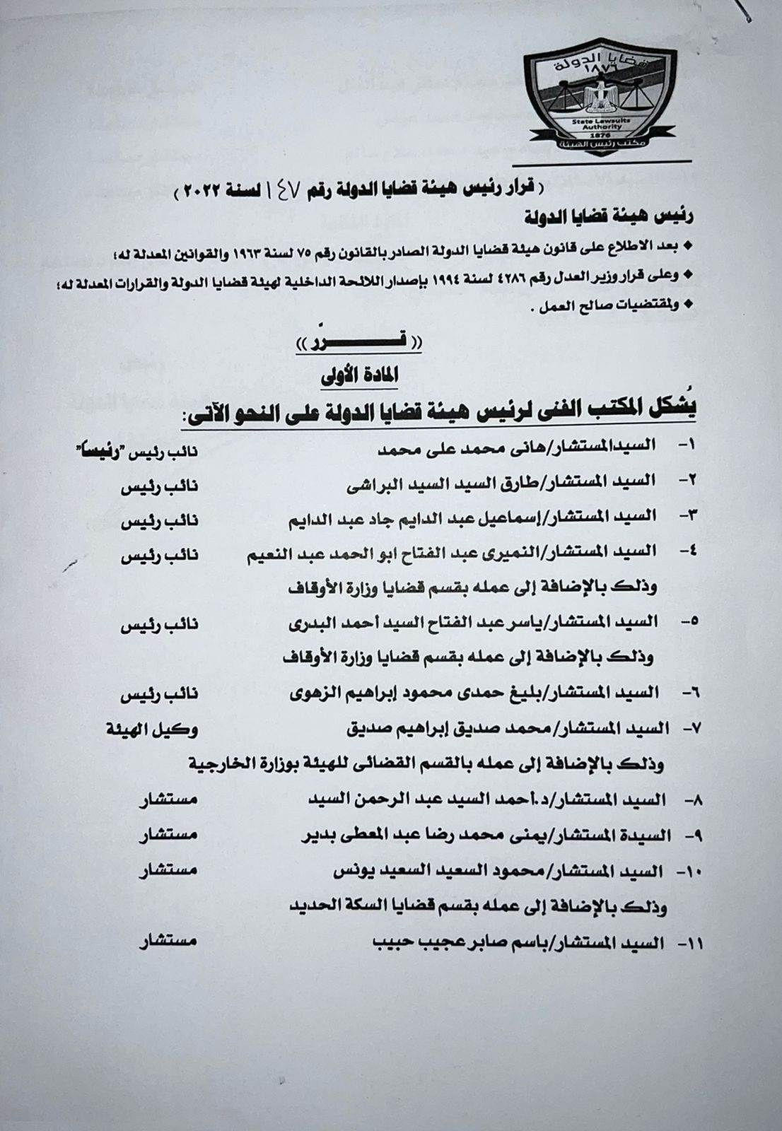 بالأسماء.. ننشر أعضاء المكتب الفني لهيئة قضايا الدولة